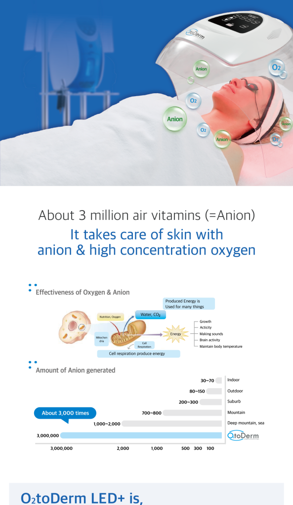 O2 to Derm, also known as Oxygen Glass Facial or Oxygen Dome Therapy, is a hyperbaric anion oxygen system. The revolutionary system turns natural air into pure oxygen of up to 92% and delivers it through the dome-shaped mask in a hyperbaric-like chamber. It generates the amount of anion ( negative anion) by 3 million more than natural production.