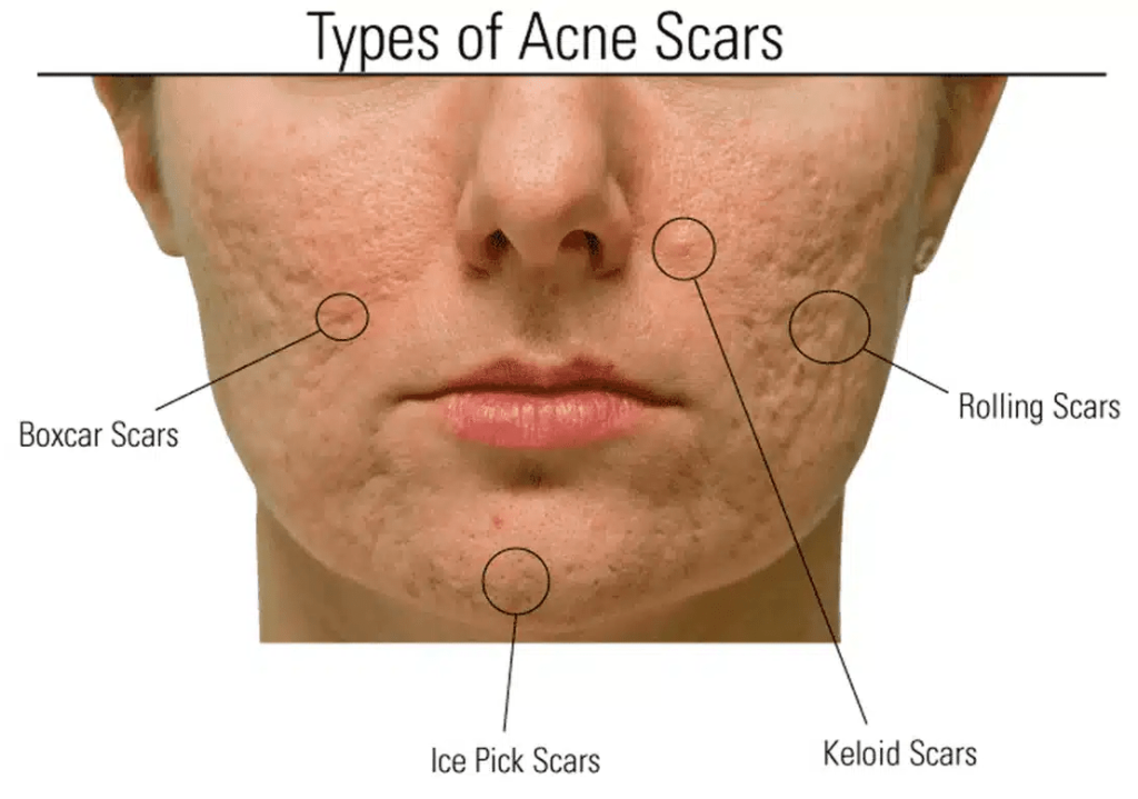 Acne scars develop as a result of inflammatory acne lesions, which damage the collagen in the skin during the healing process. The severity of acne scars can vary, ranging from shallow depressions to more pronounced and deep scars.